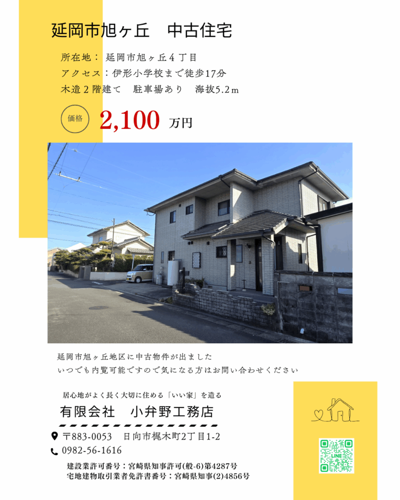 延岡市旭ヶ丘に手入れが行き届いた美しい中古物件ができました。